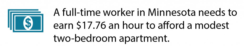 A report from the National Low-Income Housing Coalition, Out of Reach 2016, shows that workers need to earn almost twice the minimum wage to afford a fair market two-bedroom apartment in Minnesota.